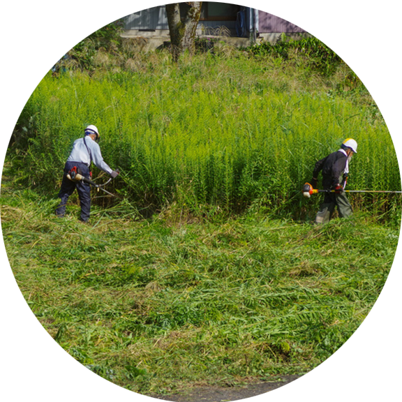 草刈り請負業:広範囲の草刈りや荒地の整備をプロの技術で行います。